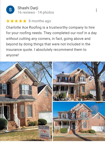 At Charlotte Ace Roofing, we prioritize amazing work, using the best materials, and never cutting corners.